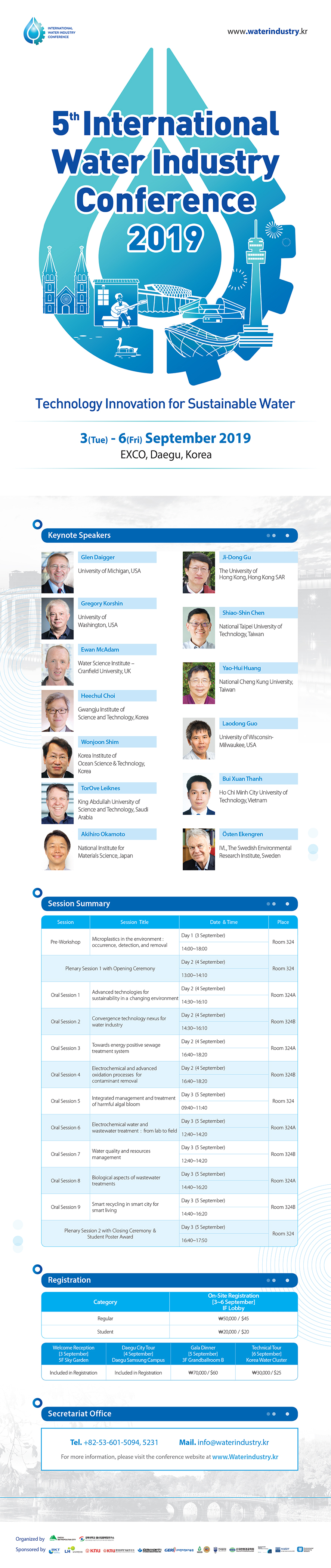[제5회 국제물산업컨퍼런스] 컨퍼런스 개최 안내 (9월 3일~6일/대구 엑스코) 작성자 : 대한환경공학회 작성일 : 2019-08-29 조회수 : 1,267 Untitled Document 5th IWIC 2019_Newsletter.jpg (다운로드 : 79회) 목록