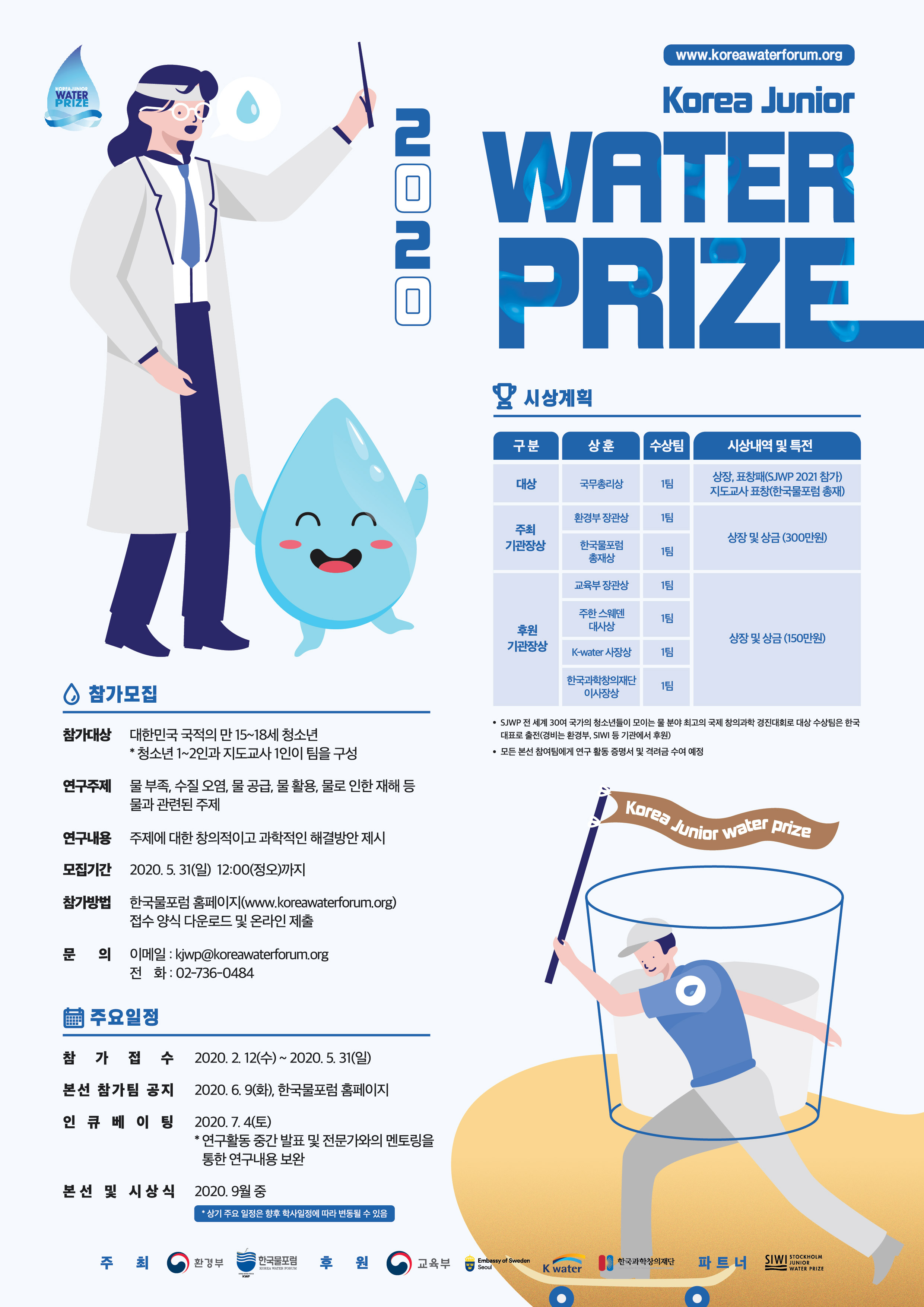 [한국물포럼] 「코리아 주니어 워터프라이즈 2020」개최 안내 작성자 : 대한환경공학회 작성일 : 2020-05-13 조회수 : 947 http://www.koreawaterforum.org/business/bus01_03.asp?scrID=0000000098&pageNum=1&subNum=1&ssubNum=3 KJWP 2020 참가안내 포스터.jpg (다운로드 : 104회) KJWP 2020 참가 안내문.pdf (다운로드 : 149회) 목록