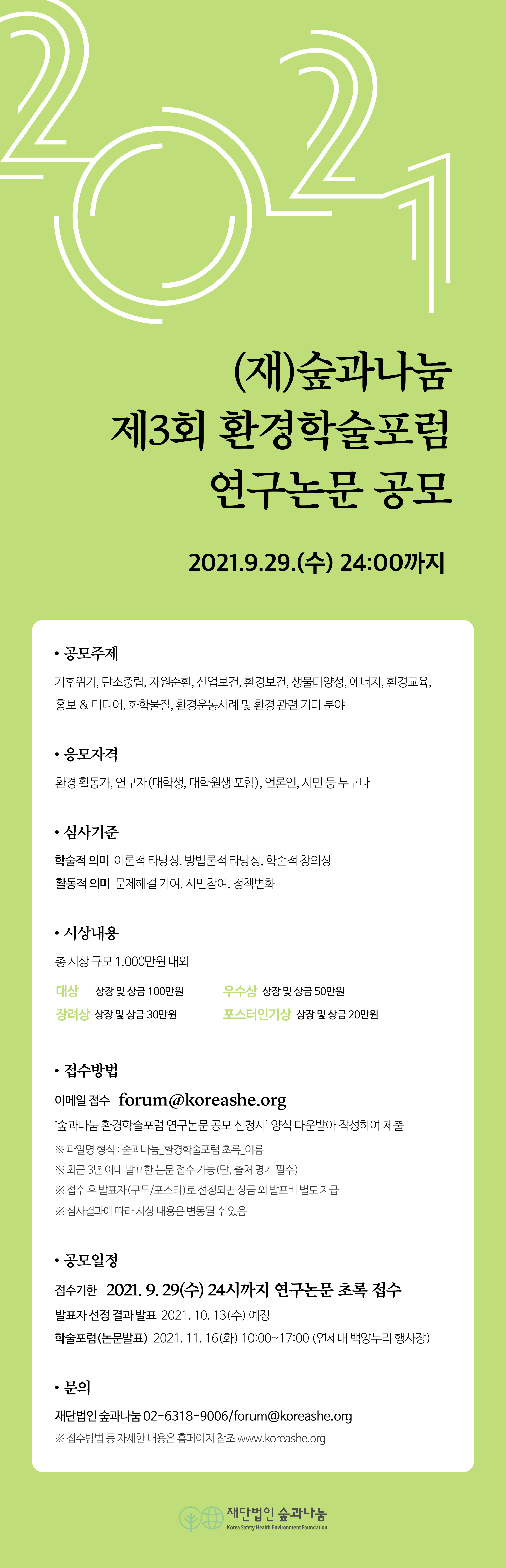[숲과나눔] 제3회 환경학술포럼 연구논문 공고 작성자 : 대한환경공학회 작성일 : 2021-08-03 조회수 : 724 숲과나눔_환경학술포럼_웹자보.jpg (다운로드 : 118회) 제3회 숲과나눔 환경학술포럼 연구논문 공모 신청서.hwp (다운로드 : 98회) 목록