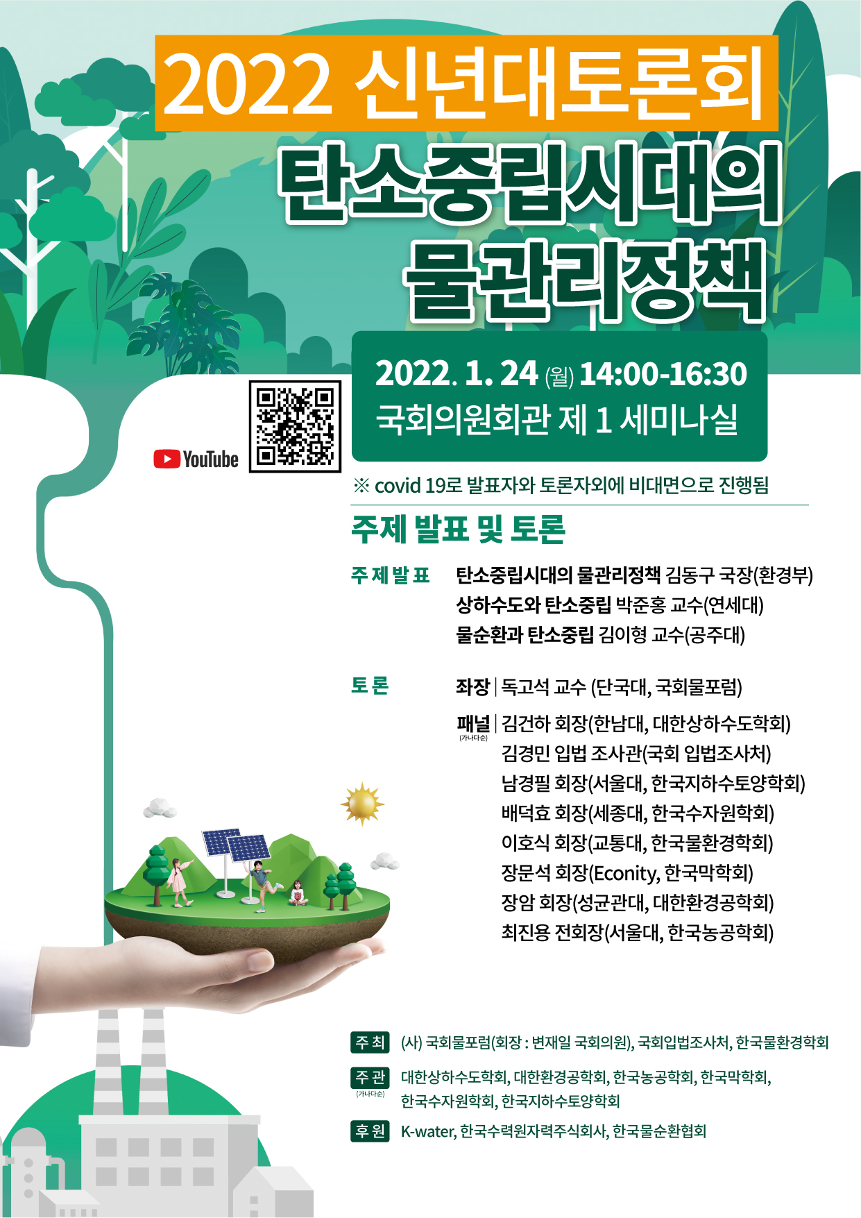 [국회물포럼] 2022 신년대토론회 탄소중립시대의 물관리정책 토론회 작성자 : 대한환경공학회 작성일 : 2022-01-12 조회수 : 806 [포스터] 국회물포럼 2022 신년대토론회 포스터_최종.jpg (다운로드 : 103회) 목록