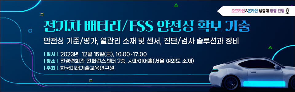 이번 세미나는 ESS와 전기차의 쟁점이 되고 있는 안전성 확보 기술을 여러 방면에서 분석하여 기술 전반에 걸친 명확한 방안을 제시함과 동시에 다양한 기술과 정보를 공유하며 그에 따른 전략을 제시하는 장이 될 것이다.