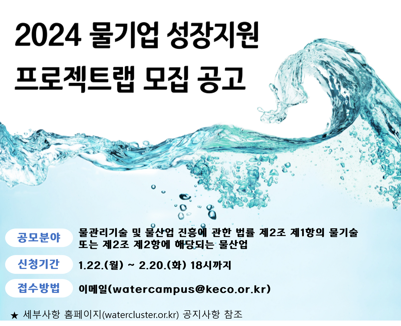 가. 공고명: 2024 물기업 성장지원 프로젝트랩 사업 공고
