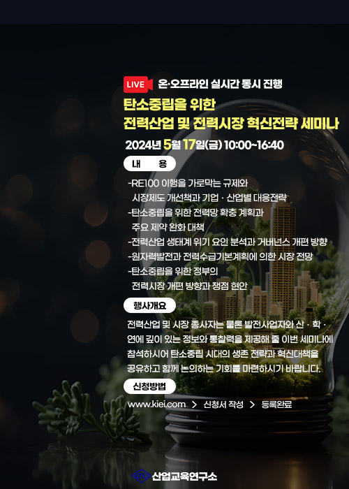탄소중립을 위한 전력산업 및 전력시장 혁신전략 세미나 개최 안내