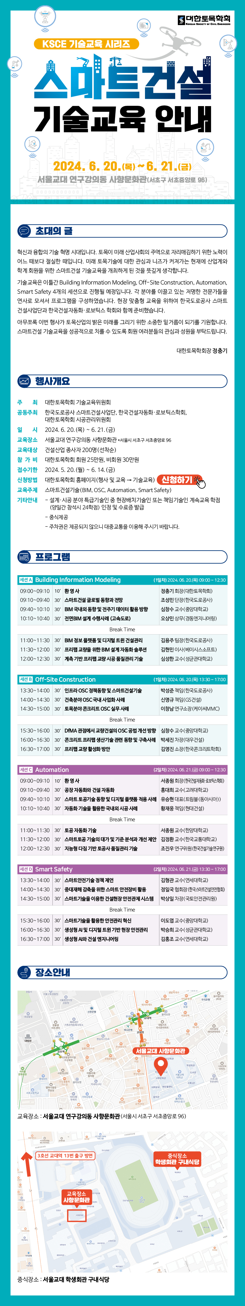 □ 접수방법 : 홈페이지à 행사 및 교육 à 기술교육(연결https://www.ksce.or.kr/eve/techedu.asp?idx=92&bgbn=R)