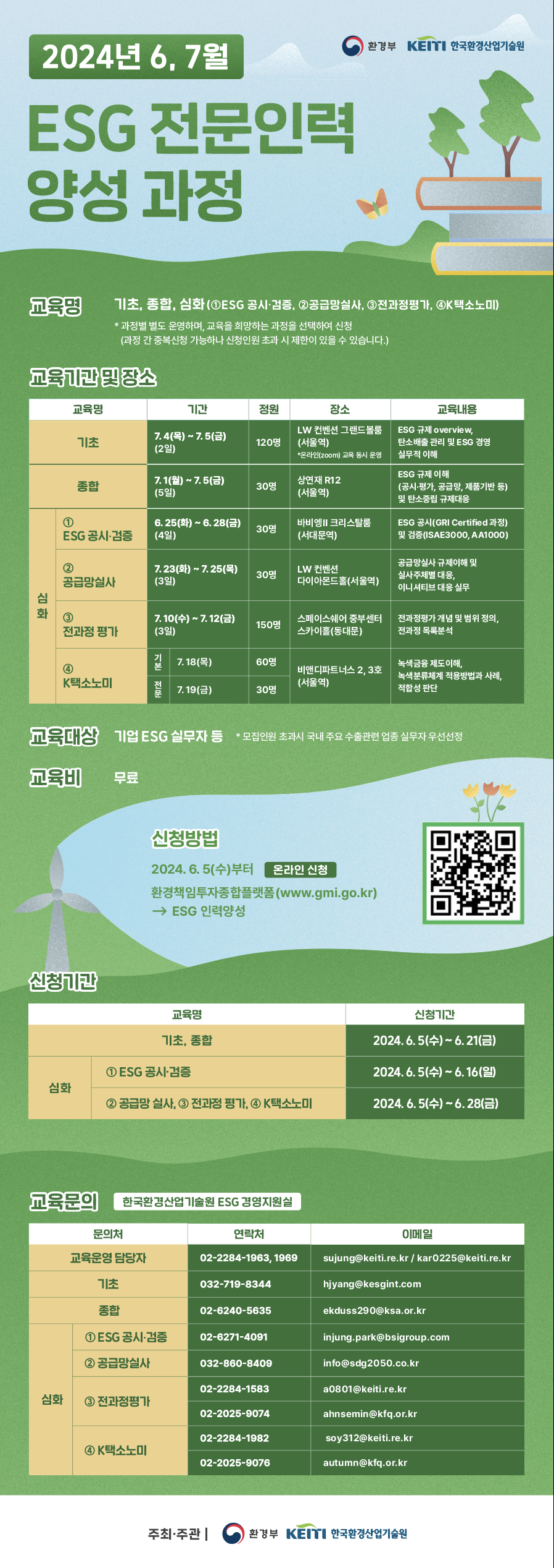 환경산업기술원 2024년 ESG 전문인력 양성 교육 안내