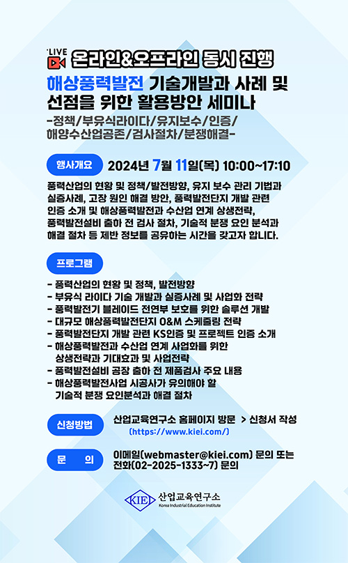 해상풍력발전 기술개발 동향과 실증사례 및 선점을 위한 활용방안 세미나 개최 안내