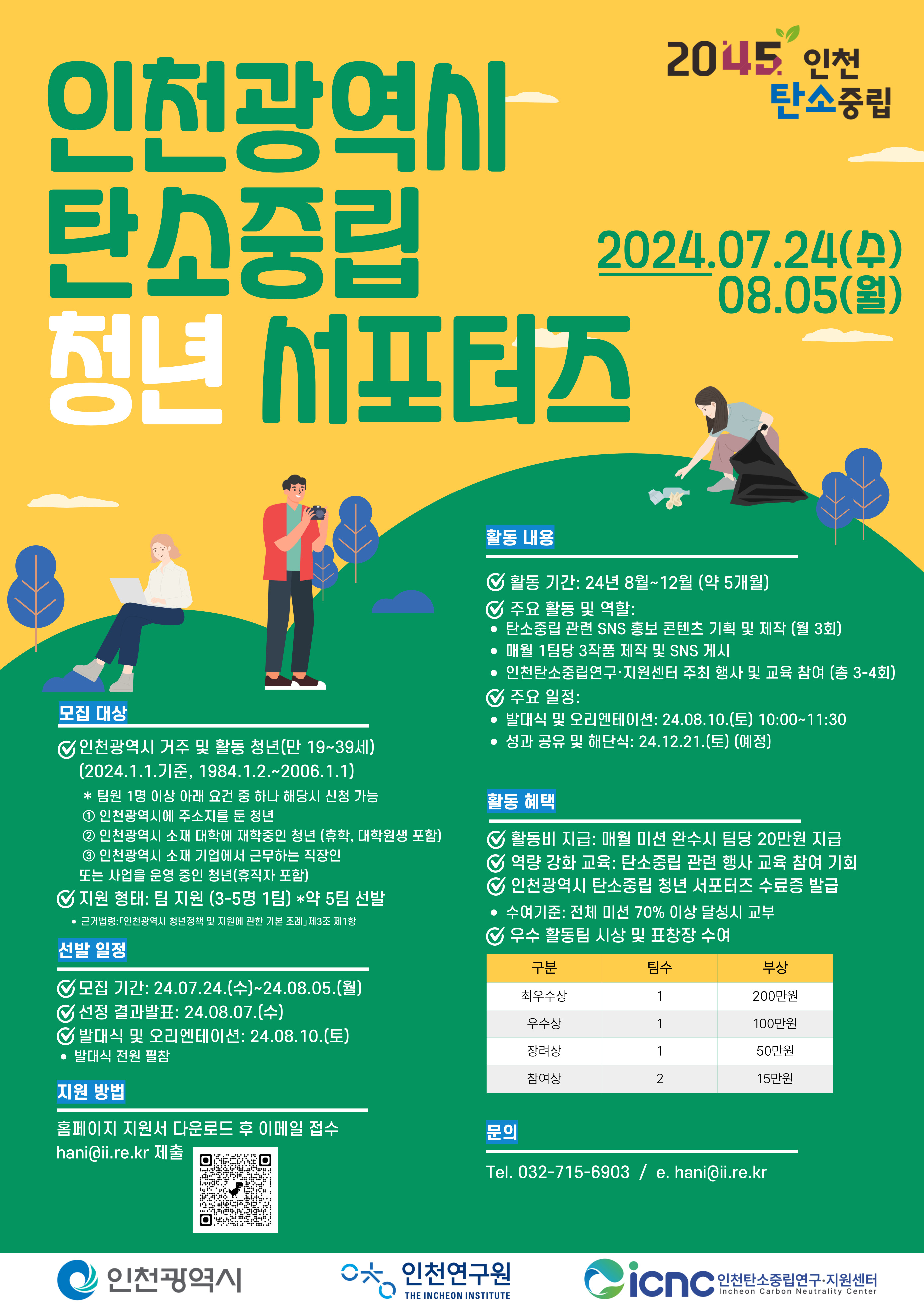 [인천탄소중립연구·지원센터]인천광역시 탄소중립 청년 서포터즈 모집 안내 작성자 : 대한환경공학회 작성일 : 2024-07-24 조회수 : 361 붙임.인천광역시 탄소중립 청년서포터즈 공고문 및 포스터.hwp (다운로드 : 145회) (포스터)인천광역시 탄소중립 청년서포터즈.jpg (다운로드 : 165회) 목록