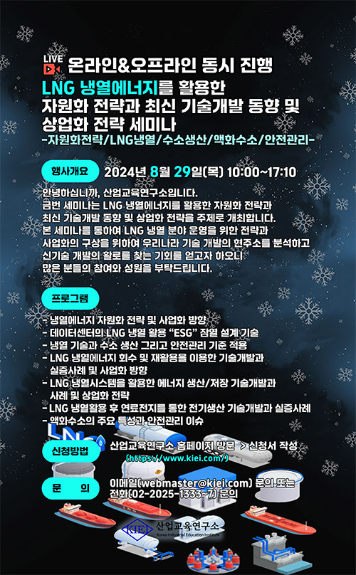 산업교육연구소 LNG 냉열에너지를 활용한 자원화 전략과 최신 기술개발 동향 및 상업화 전략 세미나 개최 안내