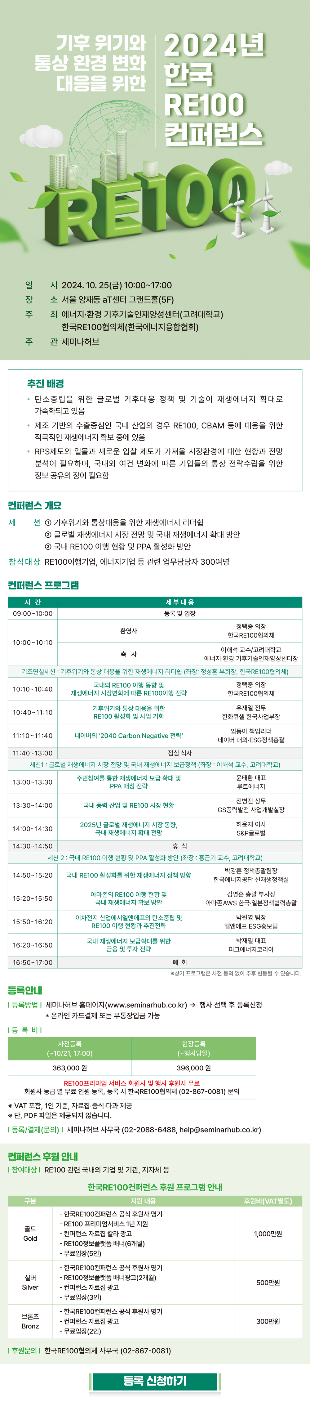 [세미나허브] 2024년 한국RE100컨퍼런스 개최 안내 작성자 : 대한환경공학회 작성일 : 2024-10-04 조회수 : 320 (2024.10.25_포스터) 기후 위기와 통상 환경 변화 대응을 위한 2024년 한국RE100컨퍼런스.jpg (다운로드 : 174회) 목록