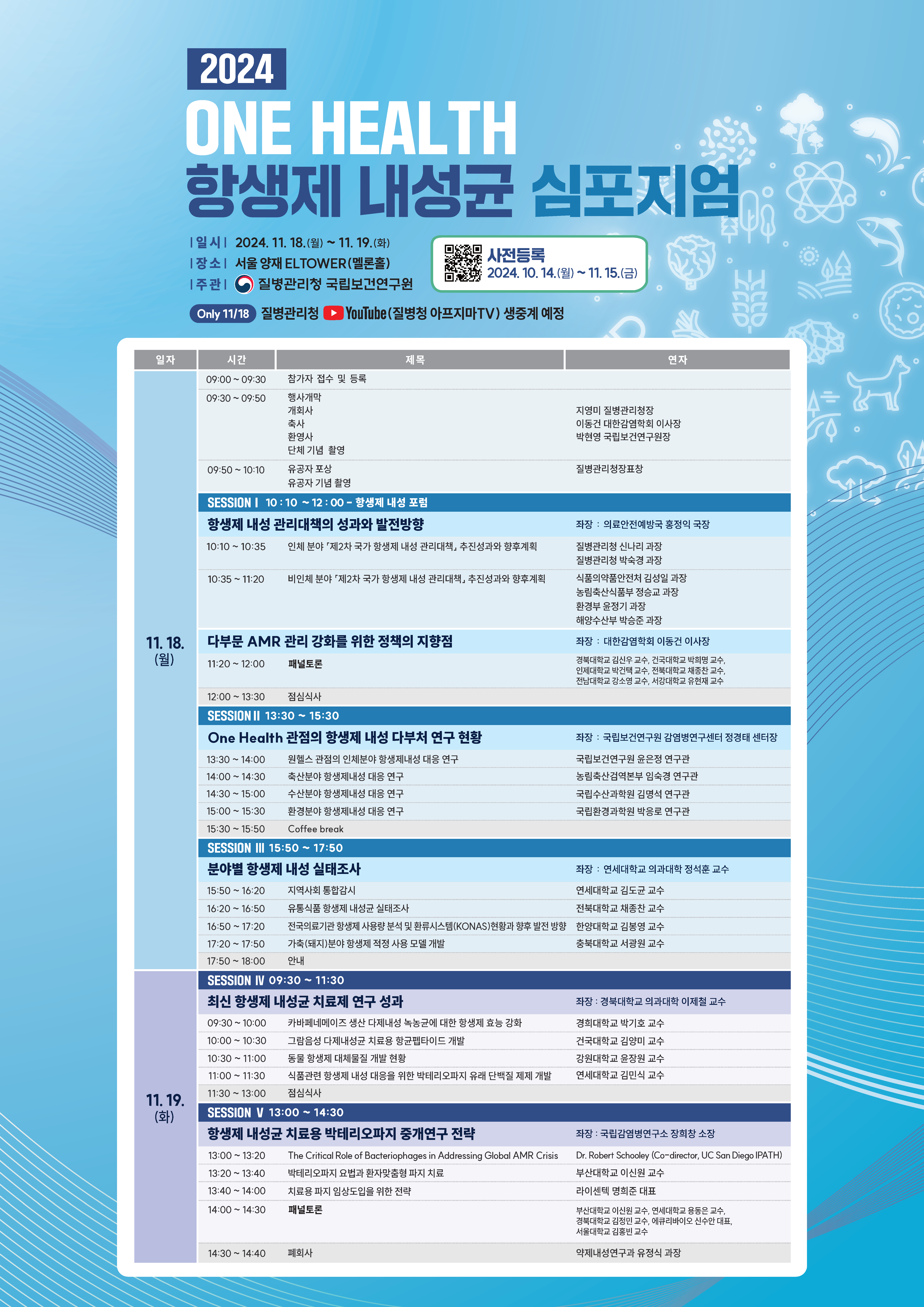 [국립보건연구원]「2024년 One Health 항생제 내성 심포지엄」 개최 안내 작성자 : 대한환경공학회 작성일 : 2024-11-14 조회수 : 264 2024년 One Health 항생제 내성 심포지엄 포스터.png (다운로드 : 213회) 목록
