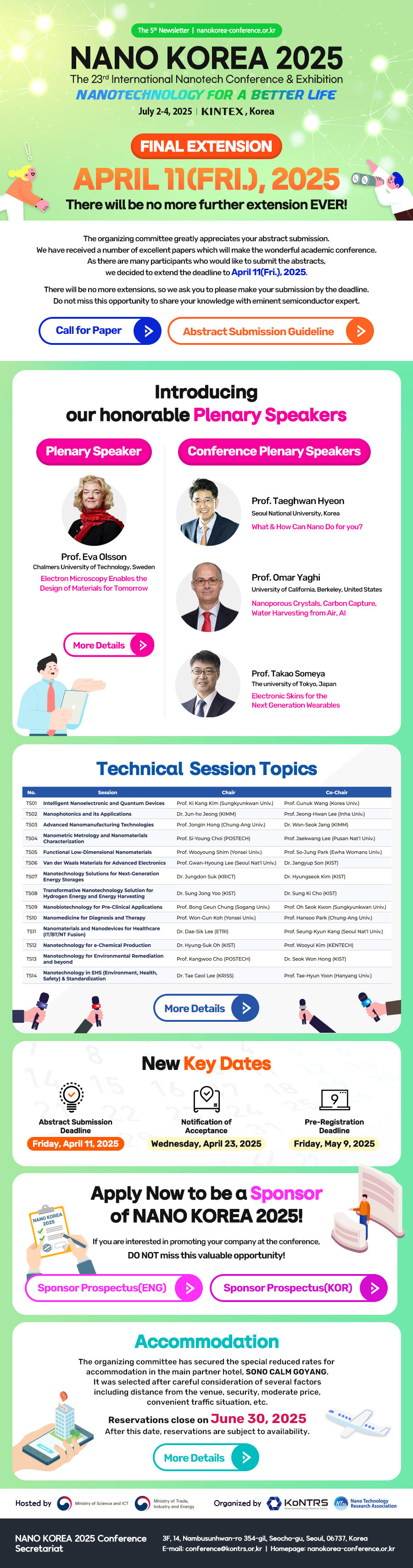 나노기술분야의 대표 국제행사인 NANO KOREA 2025 Conference(제23회 국제 나노기술 컨퍼런스 및 융합전시회)가 오는 7월 2일(수)부터