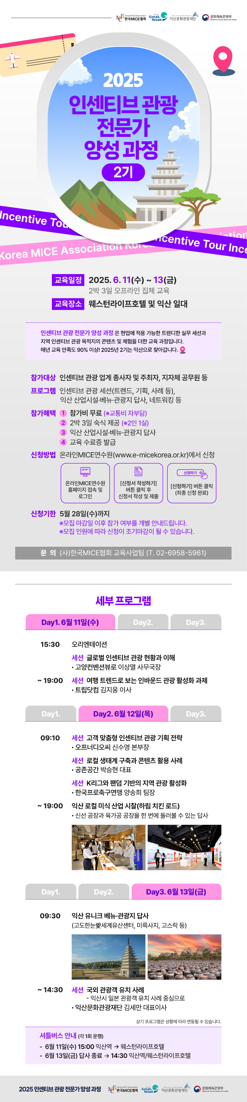 가. 교 육 명: 2025 인센티브 관광 전문가 양성 과정 2기