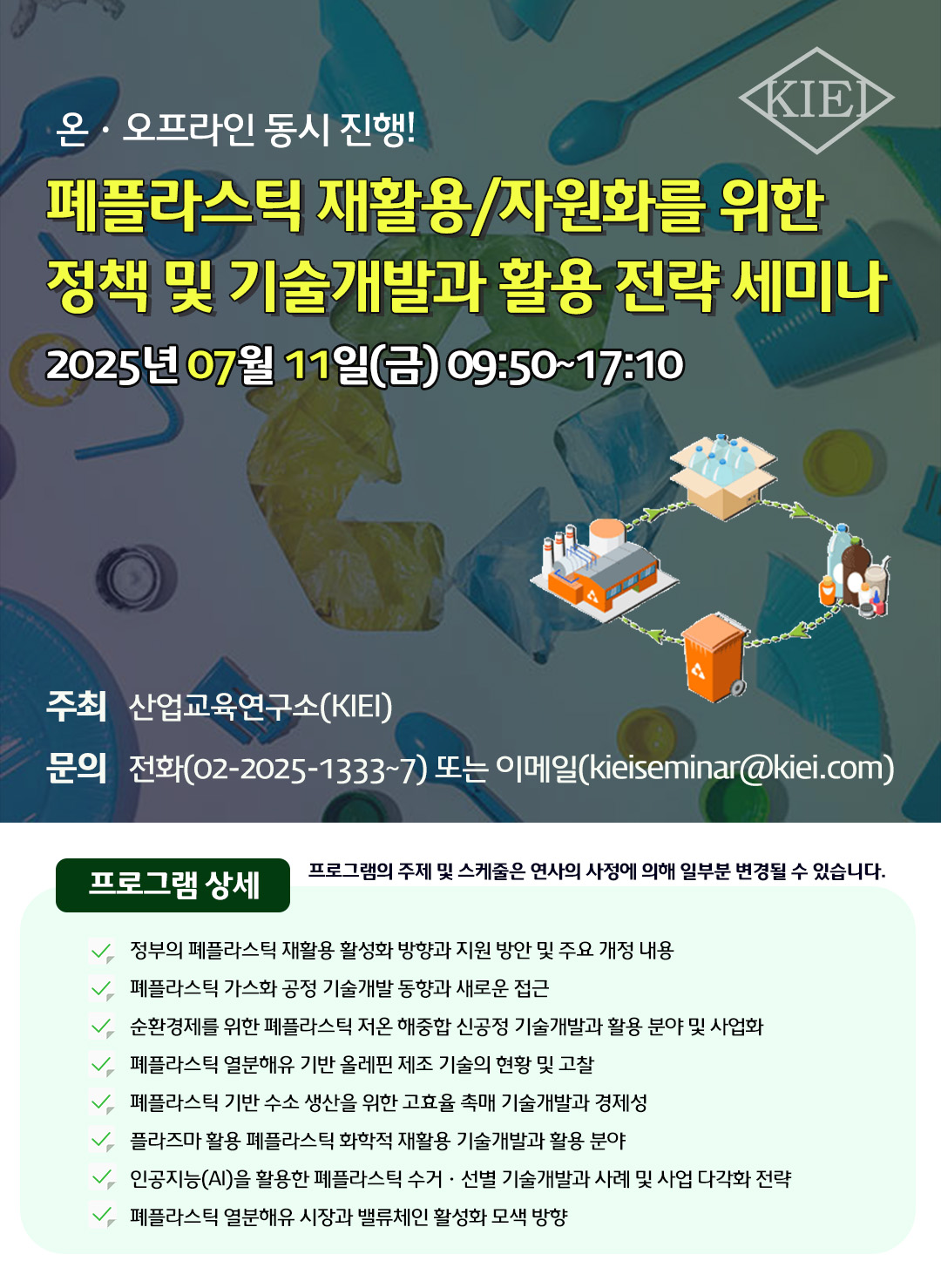 폐플라스틱 재활용/자원화를 위한 정책 및 기술개발과 활용 전략 세미나 개최 안내