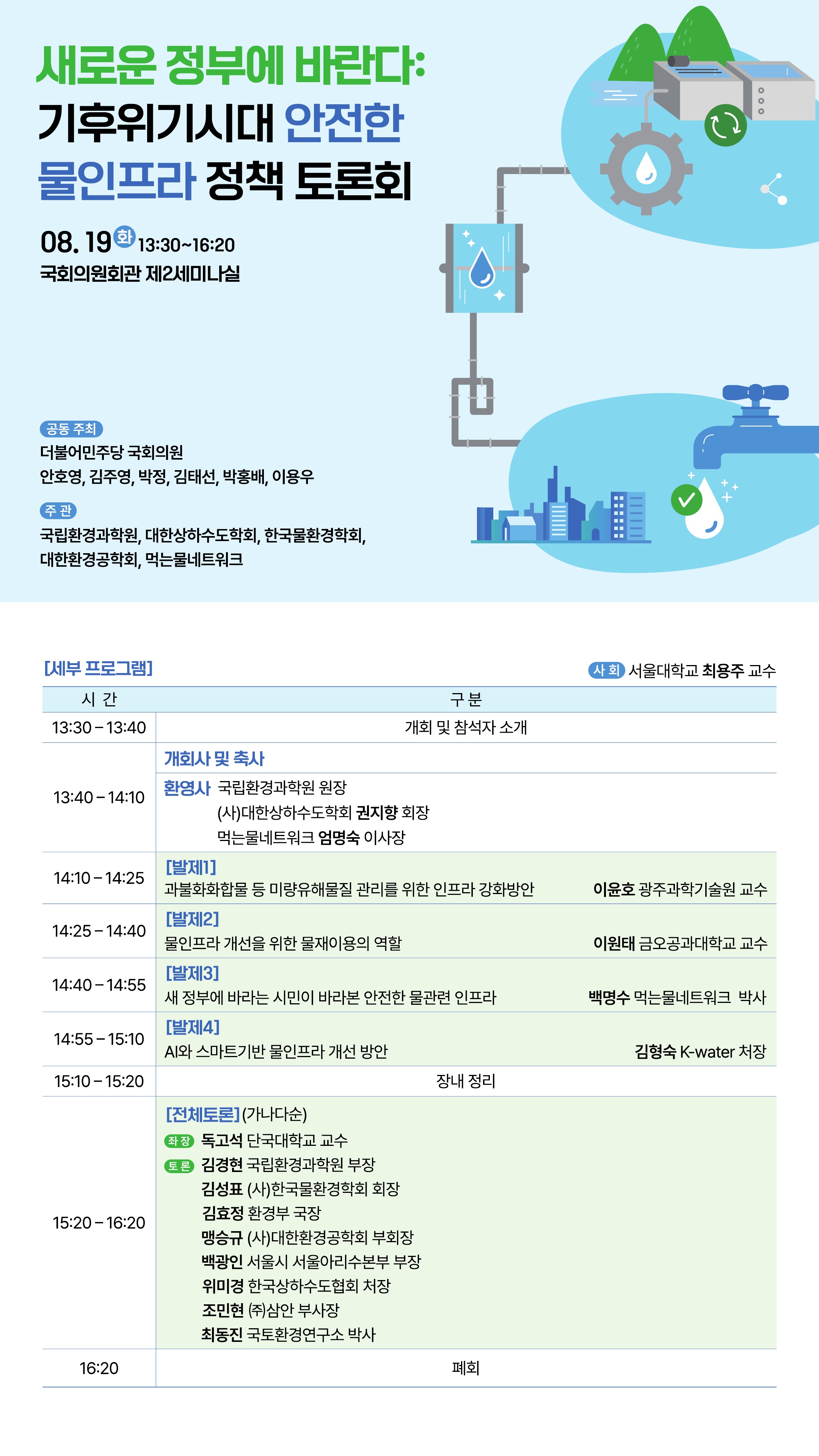 새로운 정부에 바란다 : 기후위기시대 안전한 물인프라 정책 토론회 개최 안내