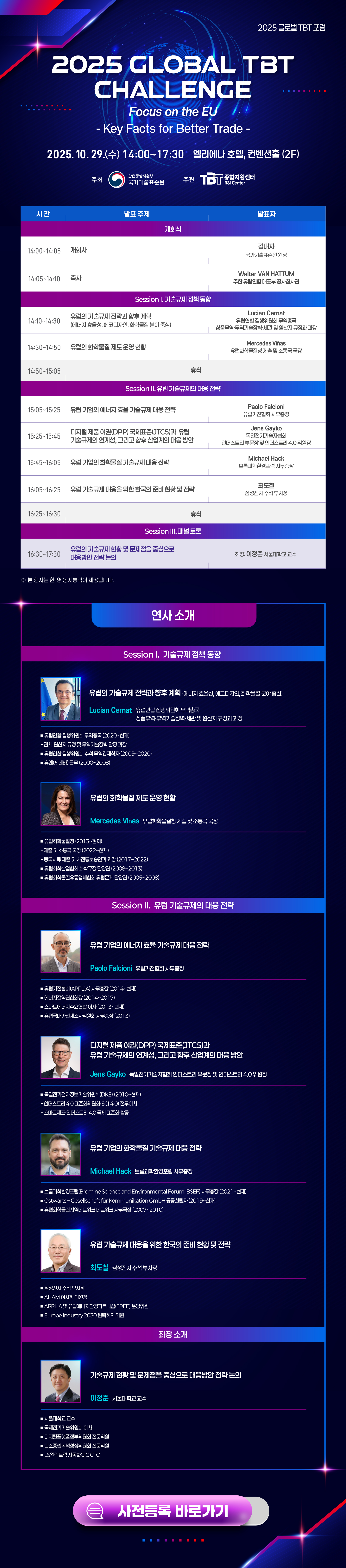[TBT종합지원센터] '2025 글로벌 무역기술장벽(TBT) 포럼 개최 안내 작성자 : 대한환경공학회 작성일 : 2025-10-16 조회수 : 40 '2025 글로벌 TBT 포럼' 사전등록 바로가기 ☞ https://forms.gle/E3Xjb3P1Q8oEqbfy7 웹포스터 2025 글로벌 TBT 포럼 2025 GLOBAL TBT CHALLENGE Focus on the EU .pdf (다운로드 : 33회) 목록