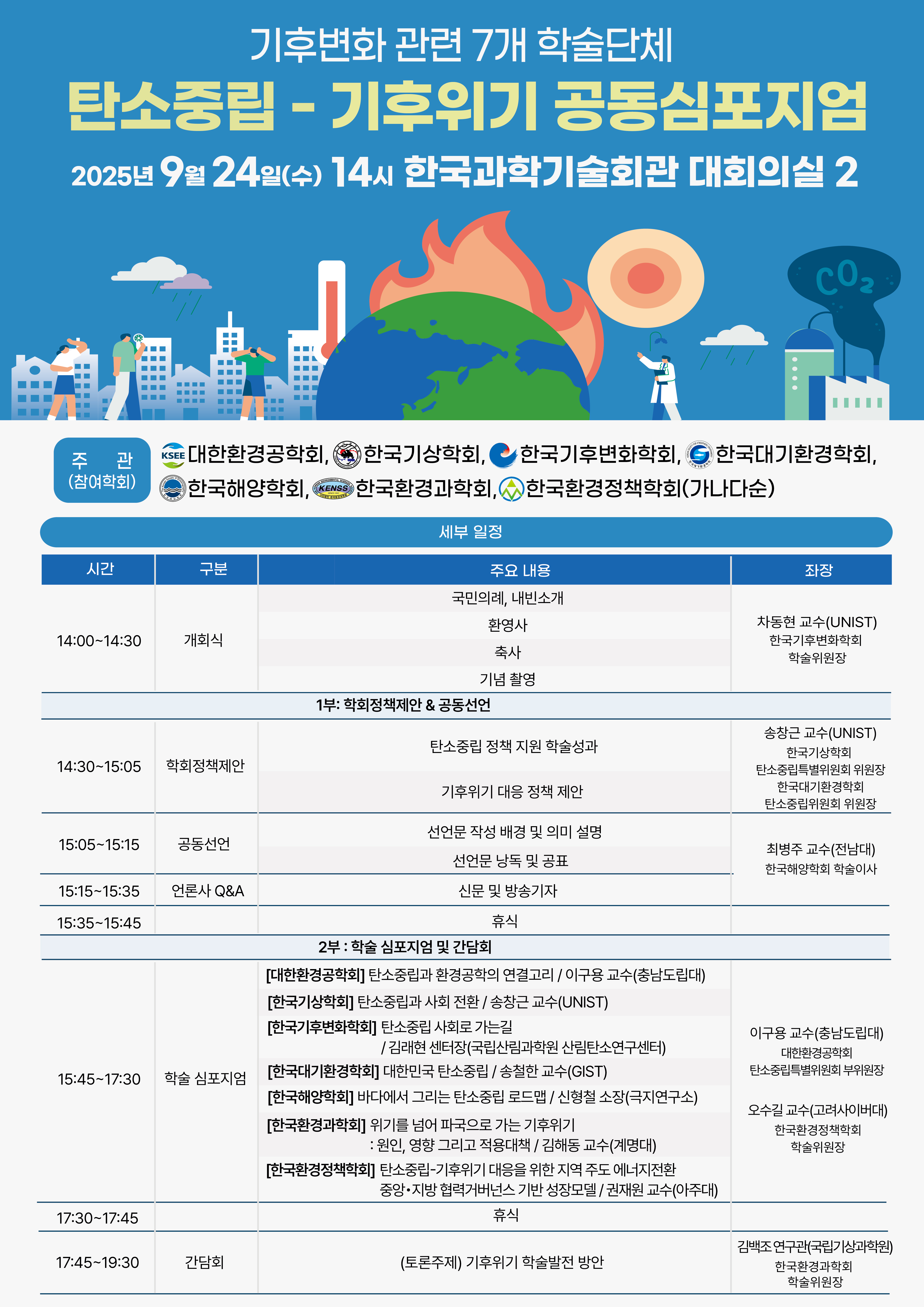 국내 [대한환경공학회] 기후 변화 관련 7개 학술단체 탄소중립-기후 위기 공동 심포지엄 개최 일자 : 09.24 (수) 장소 : 한국과학기술회관 대회의실2 첨부파일 2. 공동심포지엄 포스터 최종.pdf (다운 295회) 2. 공동심포지엄 포스터 최종.jpg (다운 308회) 목록