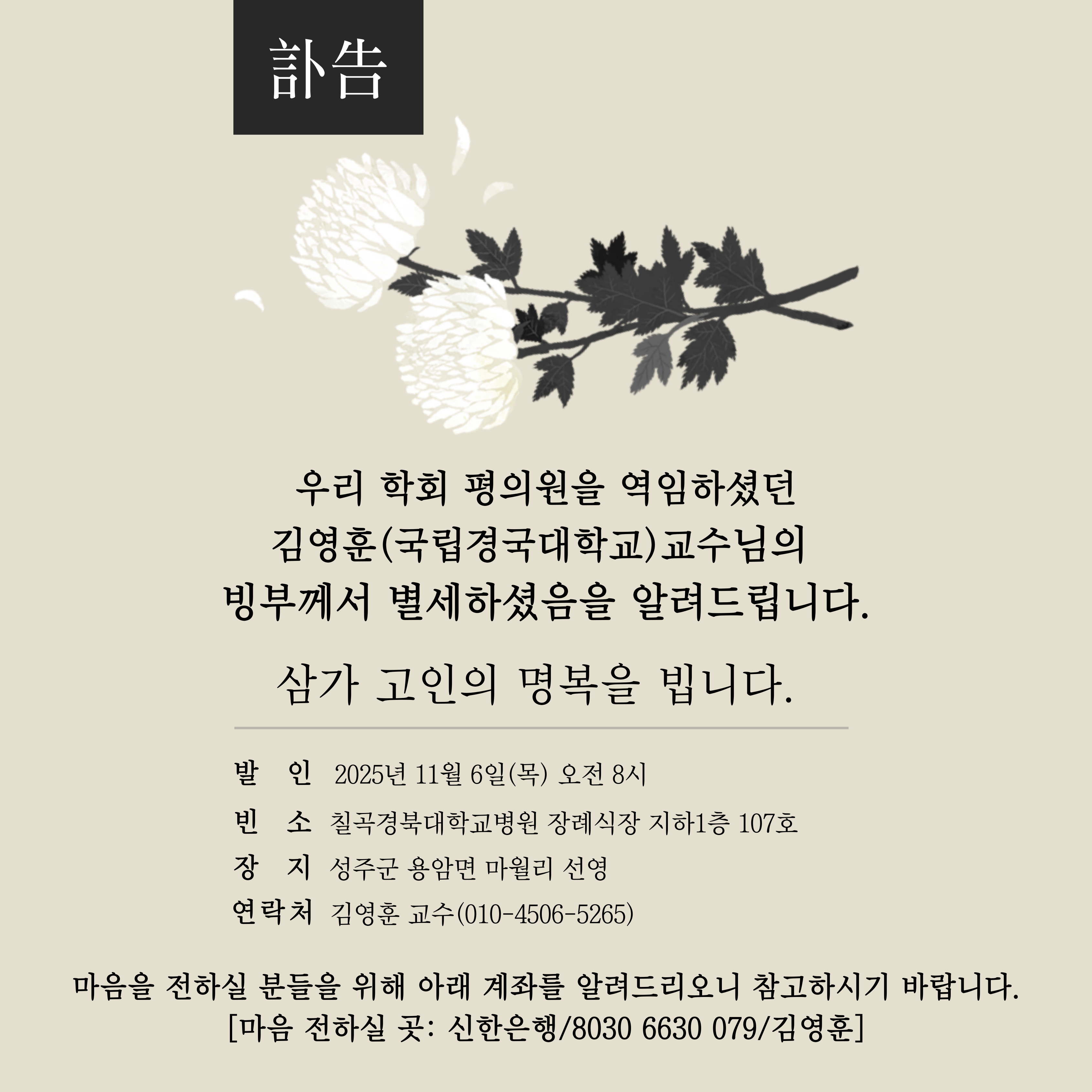 [부고] 김영훈(국립경국대학교)교수님 빙부상