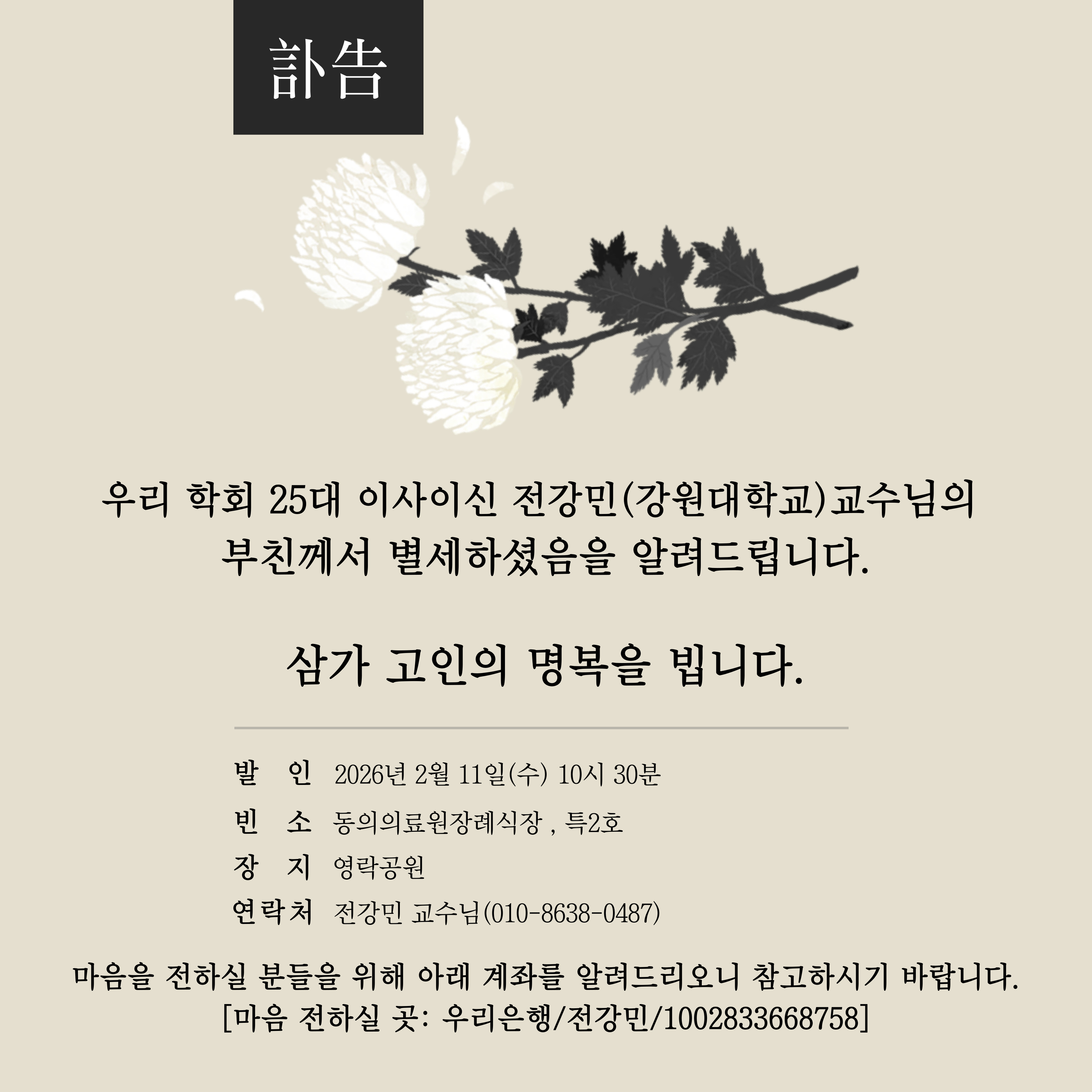[부고] 전강민(강원대학교)교수님 부친상