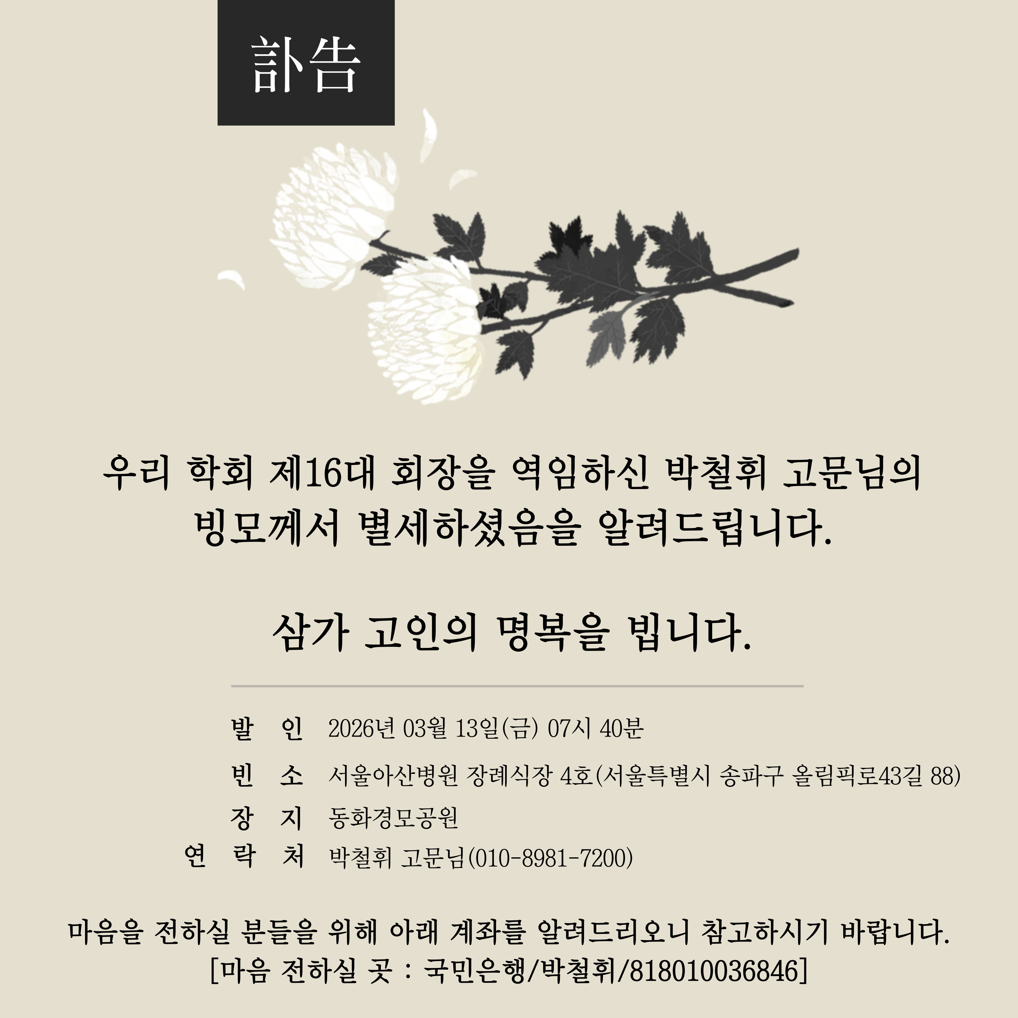 [부고] 박철휘 고문님 빙모상