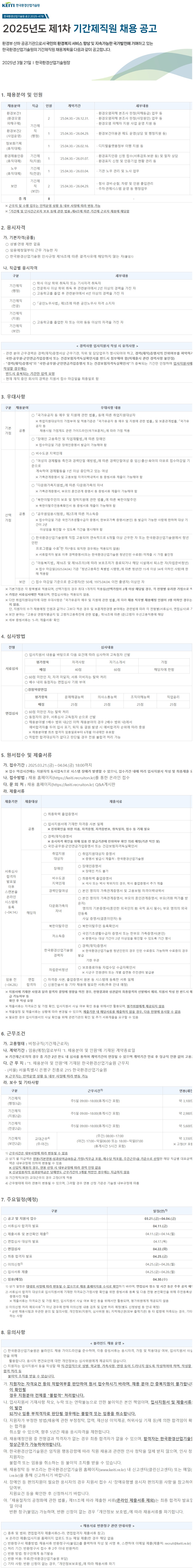 [한국환경산업기술원] 2025년도 제1차 기간제직원 채용 공고 작성자 : 대한환경공학회 작성일 : 2025-03-24 조회수 : 400 [한국환경산업기술원] 2025년도 제1차 기간제직원 채용 공고 - 접수홈페이지: https://keiti.recruiton.kr/recruit/ - 접수일자: 03.21 ~ 04.04 환경산업기술원.png (다운로드 : 247회) 목록