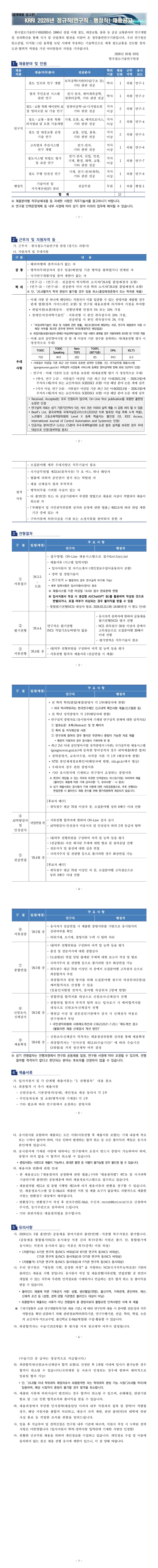 [한국철도기술연구원] 2026년도 정규직(연구·행정직) 공개채용 안내 작성자 : 대한환경공학회 작성일 : 2026-03-03 조회수 : 12 붙임1 2026년 정규직 채용공고문.pdf (다운로드 : 1회) 붙임2 직무기술서 1 .pdf (다운로드 : 1회) 첨부 CS분야 우수국제학술대회 목록 2024년 한국정보과학회 제정 연구 3 4분야우대사항.pdf (다운로드 : 1회) 목록