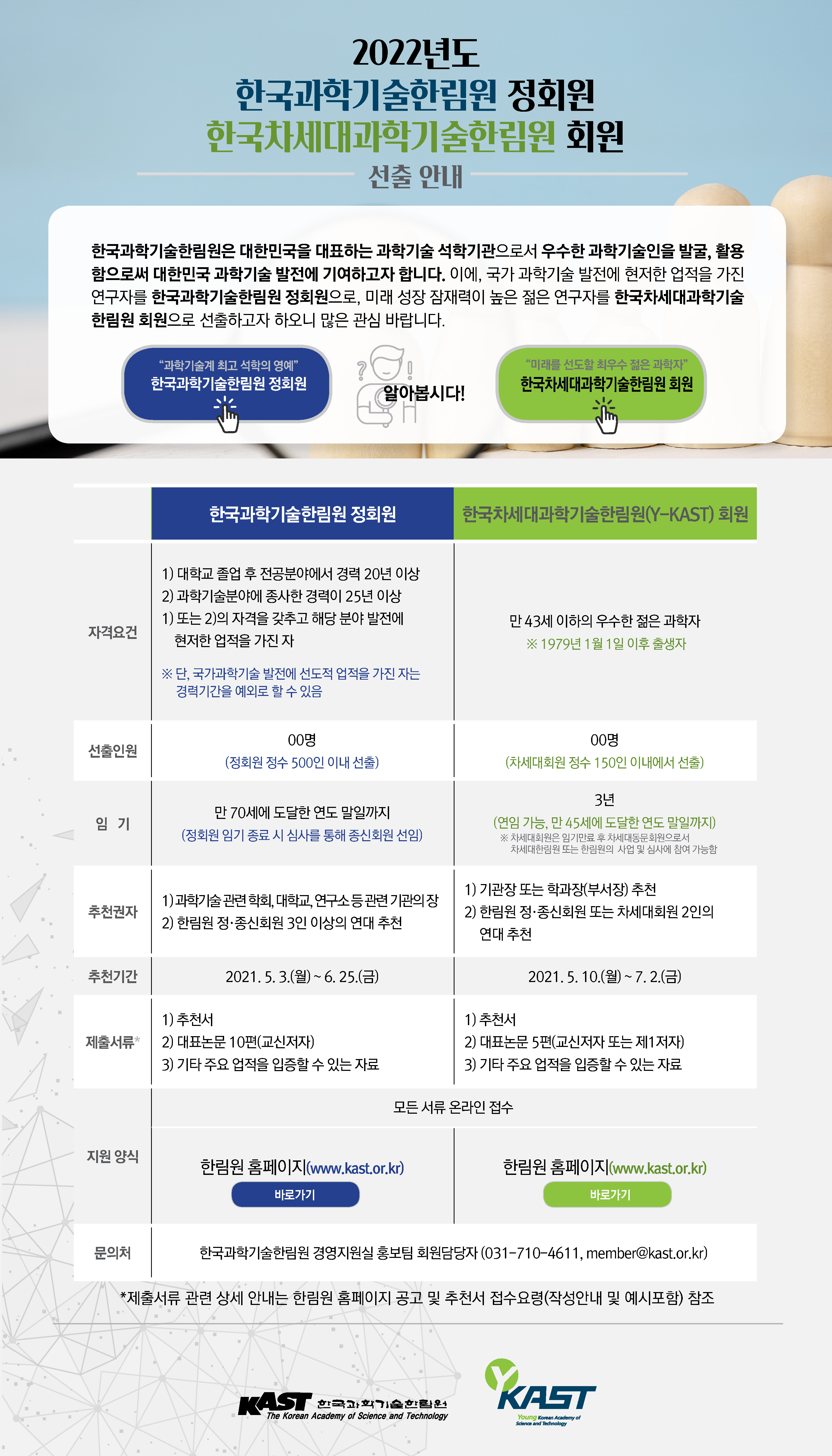 [한국과학기술한림원] 정회원 및 Y-KAST 회원 선출 작성자 : 대한환경공학회 작성일 : 2021-05-14 조회수 : 733 2022년 한국(차세대)과학기술한림원 회원선출 안내 통합공고문.jpg (다운로드 : 84회) 목록