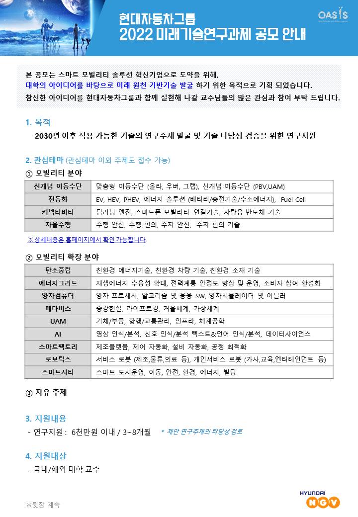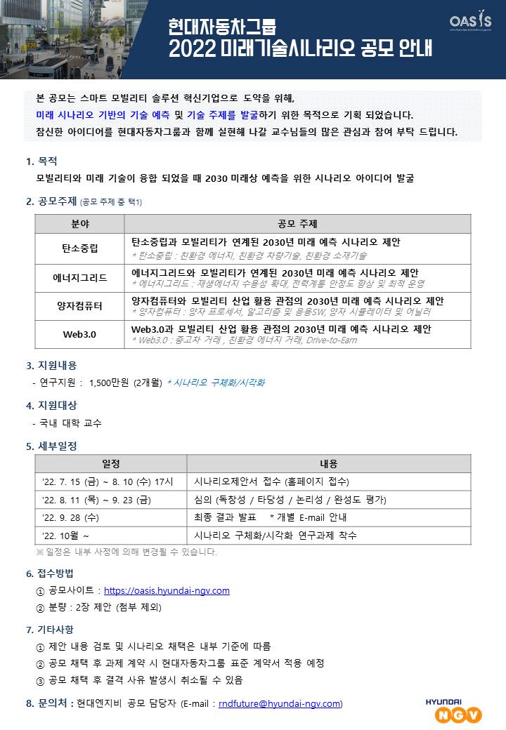 2022년 현대자동차그룹 미래기술 연구과제 및 시나리오 공모 안내