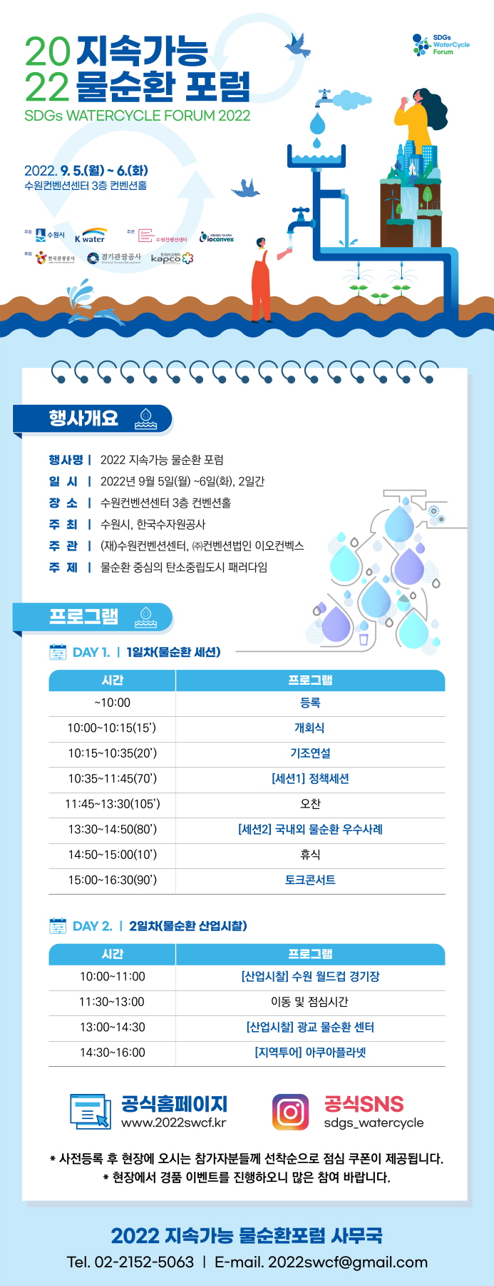 [수원컨벤션센터]2022 지속가능 물순환포럼 홍보요청 작성자 : 대한환경공학회 작성일 : 2022-08-11 조회수 : 537 http://www.2022swcf.kr/registration/privacypolicy.php 링크를 통해 사전등록이 가능합니다. 목록