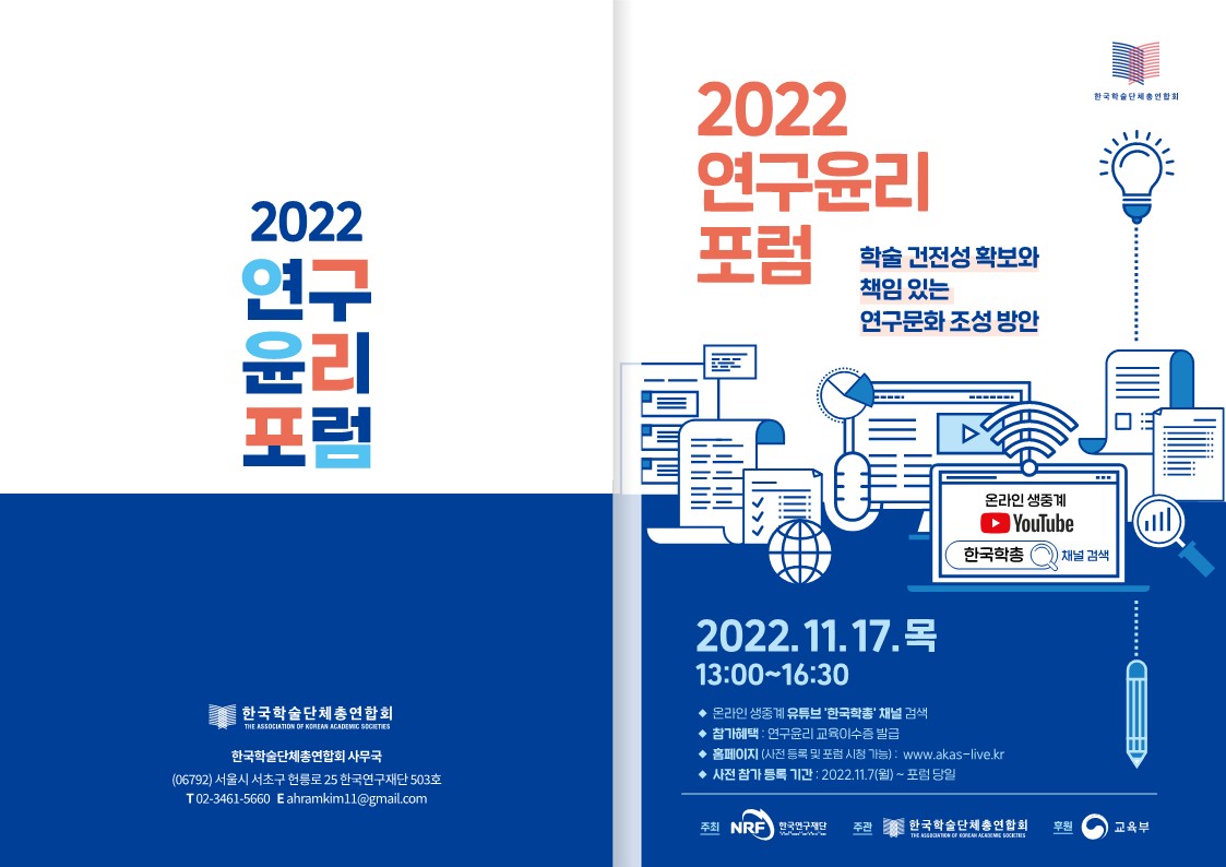 [한국학술단체총연합회]학술용어 정비 학술대회 개최 안내 작성자 : 대한환경공학회 작성일 : 2022-11-15 조회수 : 306 http://www.akas-live.kr 2022년 국내 연구윤리포럼 안내.pdf (다운로드 : 83회) 목록