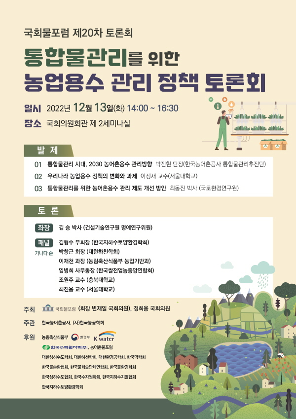 국회물포럼 제20차 토론회 홍보 요청 작성자 : 대한환경공학회 작성일 : 2022-12-06 조회수 : 277 붙임1.제20차 국회물포럼 토론회 계획안.pdf (다운로드 : 93회) 목록