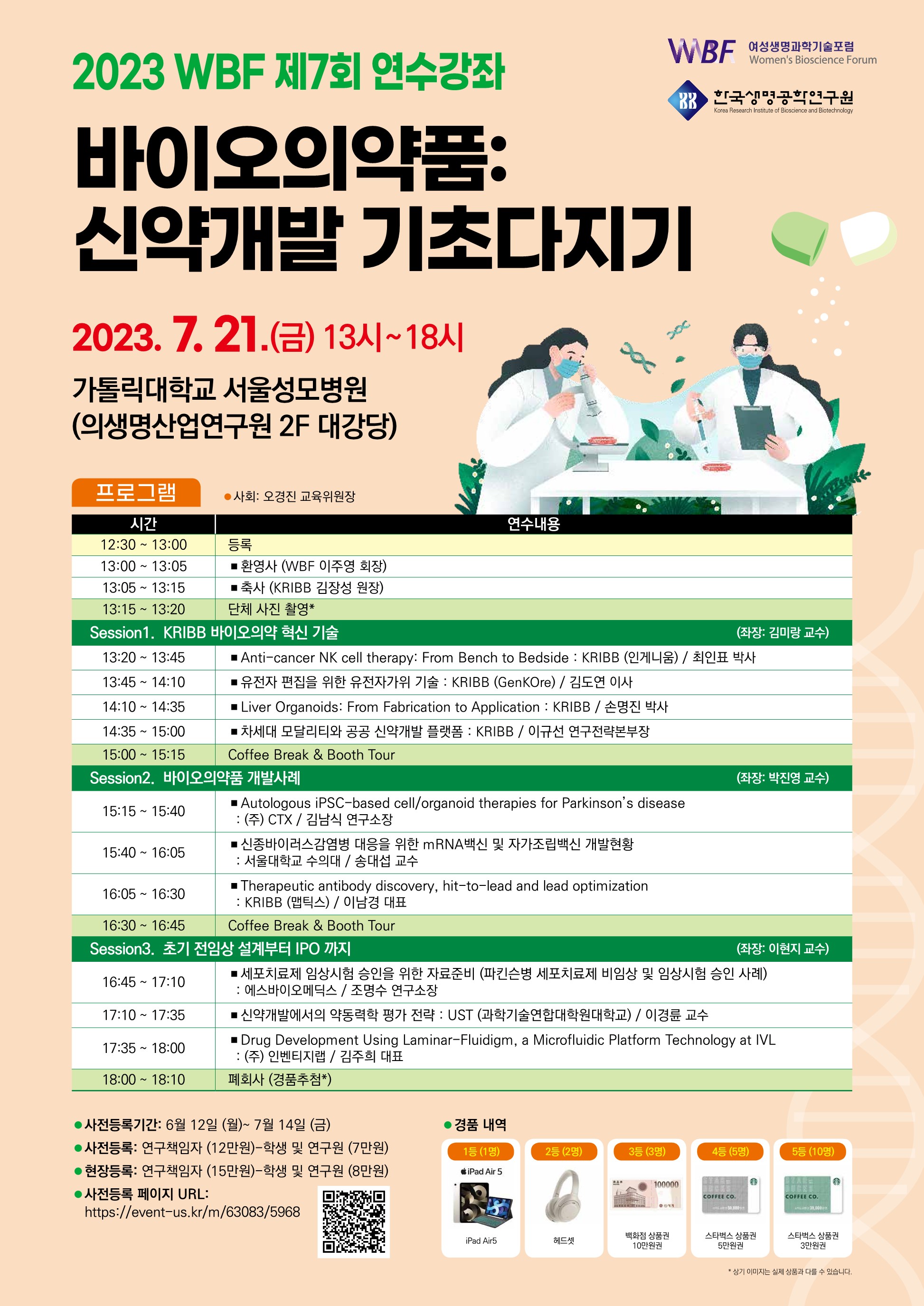 문의처: 여성생명과학기술포럼 사무국 (02-3452-2031, master@womenbioforum.org)