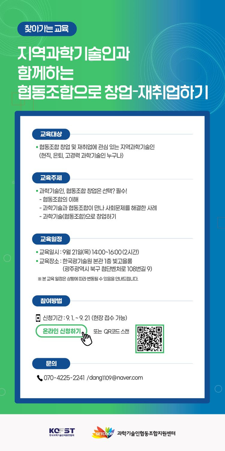 [과총] 지역과학기술인을 위한 찾아가는 교육안내(9/21 오후2시)