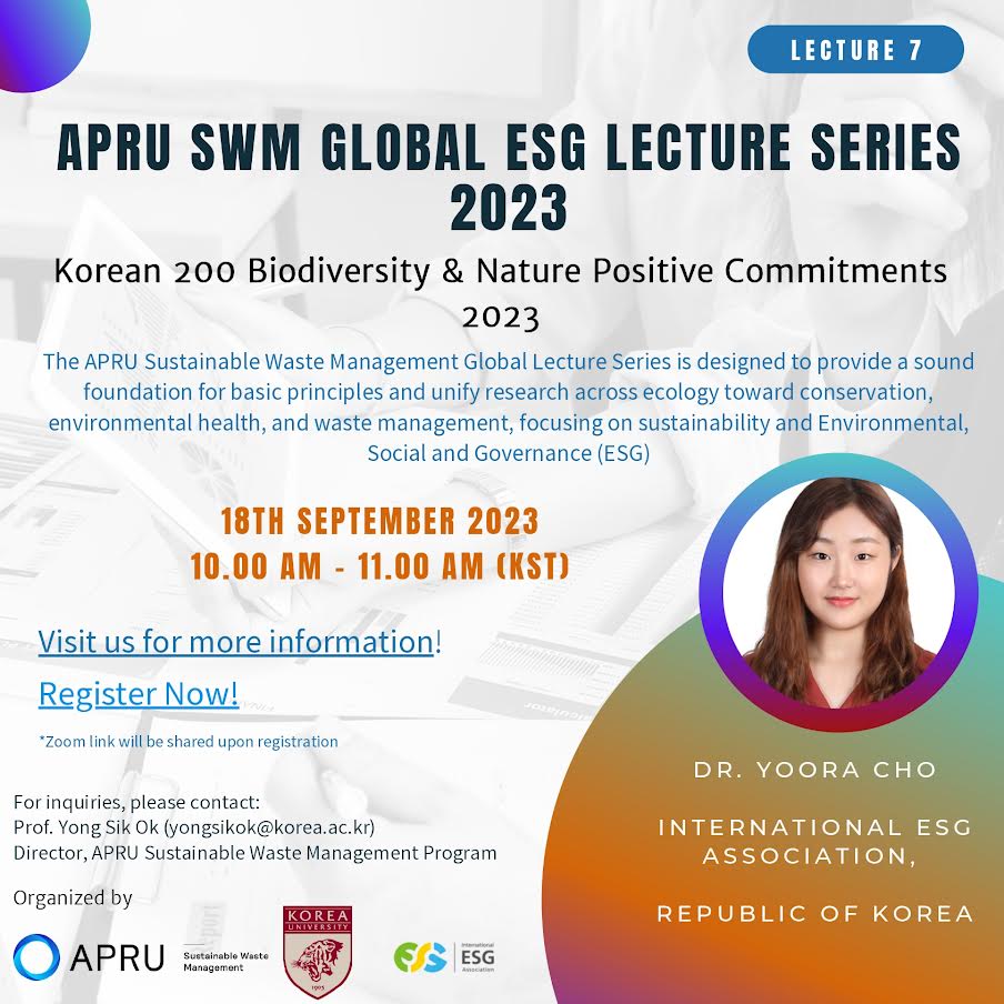제7회 APRU SWM 글로벌 강연 세션의 연사는 대한민국 국제ESG협회 조유라 박사 입니다.