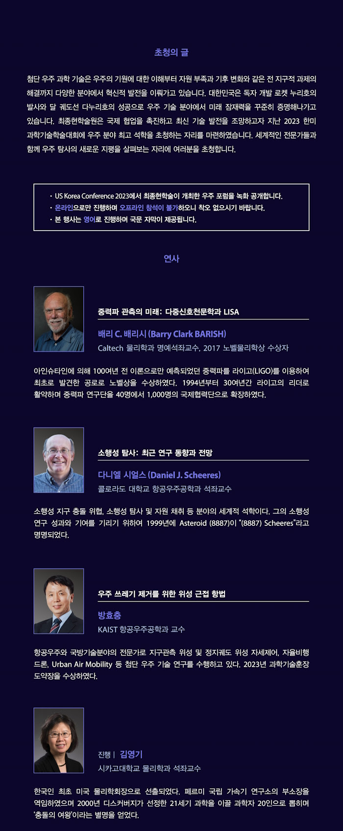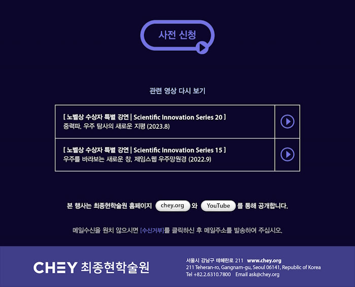 [최종현학술원] 노벨상 수상자 우주 특강 II 안내 (9.26.(화) 15:00)