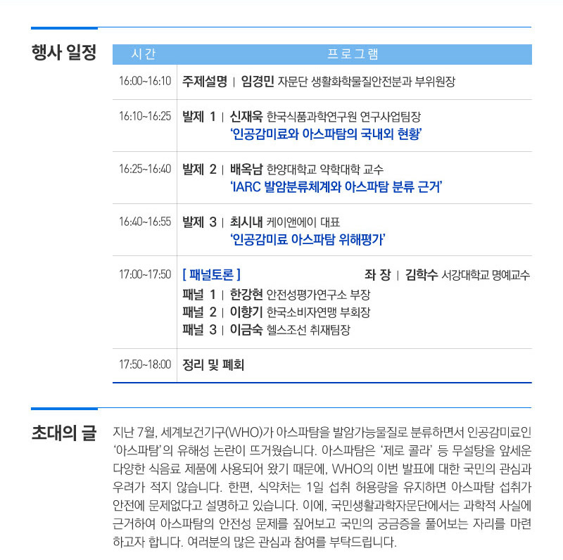 [국민생활과학자문단] 제54회 국민생활과학기술포럼: 인공감미료, 아스파탐의 안전성