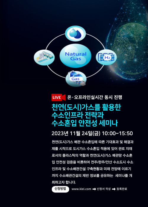 [산업교육연구소] 그린메탄올/가스터빈/천연(도시)가스 세미나(총 1건) 안내 작성자 : 대한환경공학회 작성일 : 2023-11-07 조회수 : 233 1124_천연(도시)가스를 활용한 수소인프라전략.zip (다운로드 : 96회) 1123_가스터빈.zip (다운로드 : 92회) 1117_그린메탄올 최신동향.zip (다운로드 : 96회) 목록