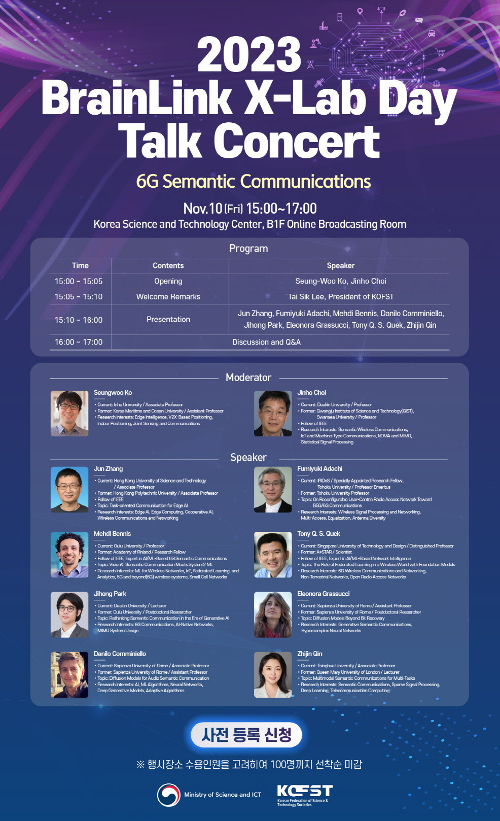 [과총] 2023 BrainLink X-Lab Day Talk Concert 사전신청 (6G 시멘틱통신/11.10) 작성자 : 대한환경공학회 작성일 : 2023-11-09 조회수 : 306 목록