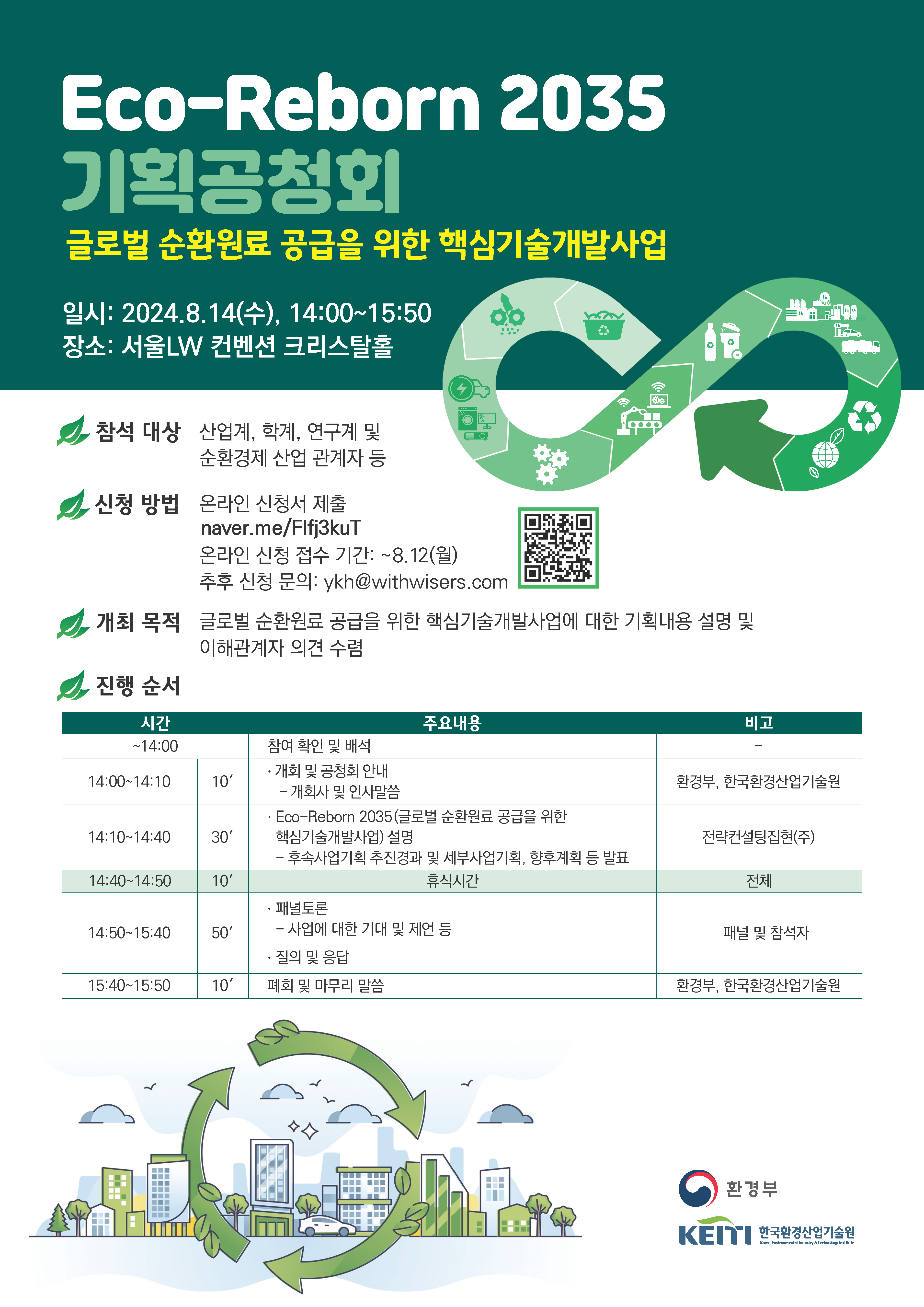 KEITI '글로벌 순환원료 공급을 위한 핵심 기술개발사업(가칭)' 기획공청회 개최 안내