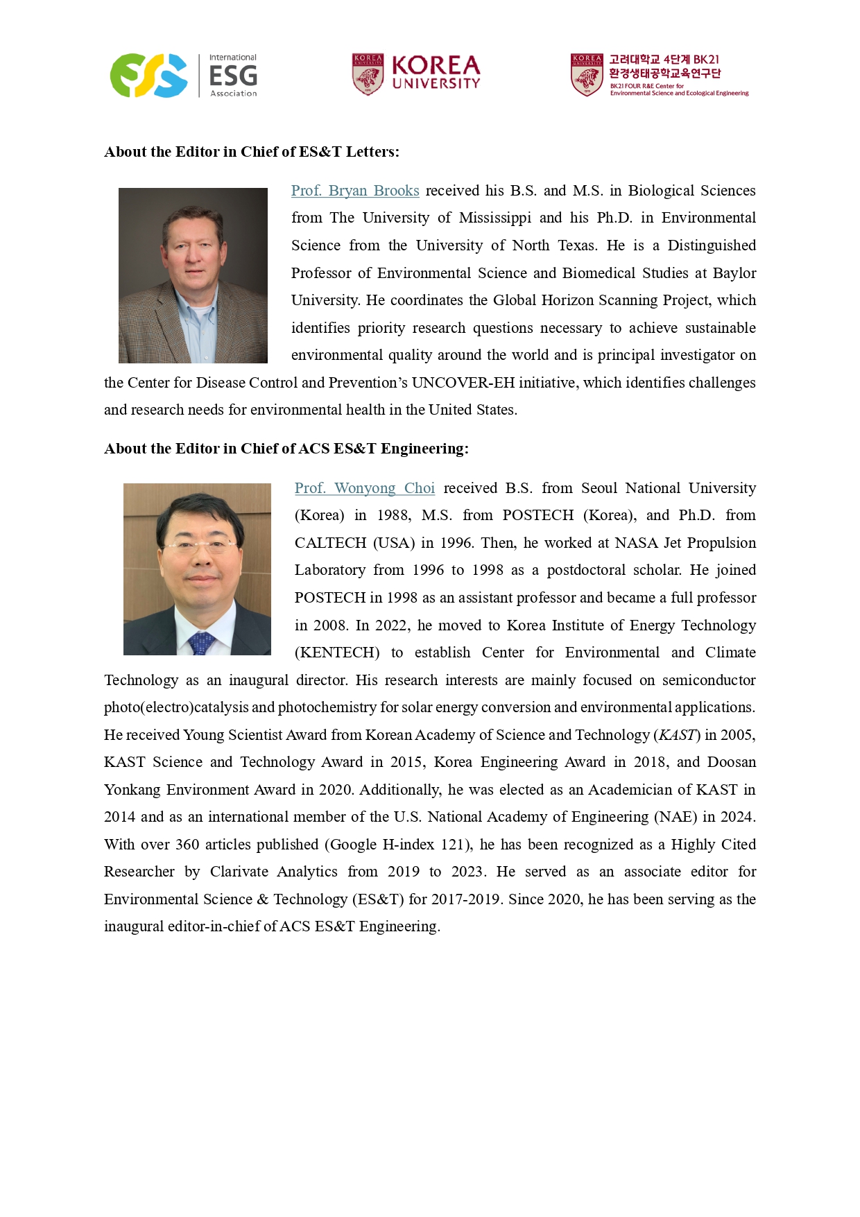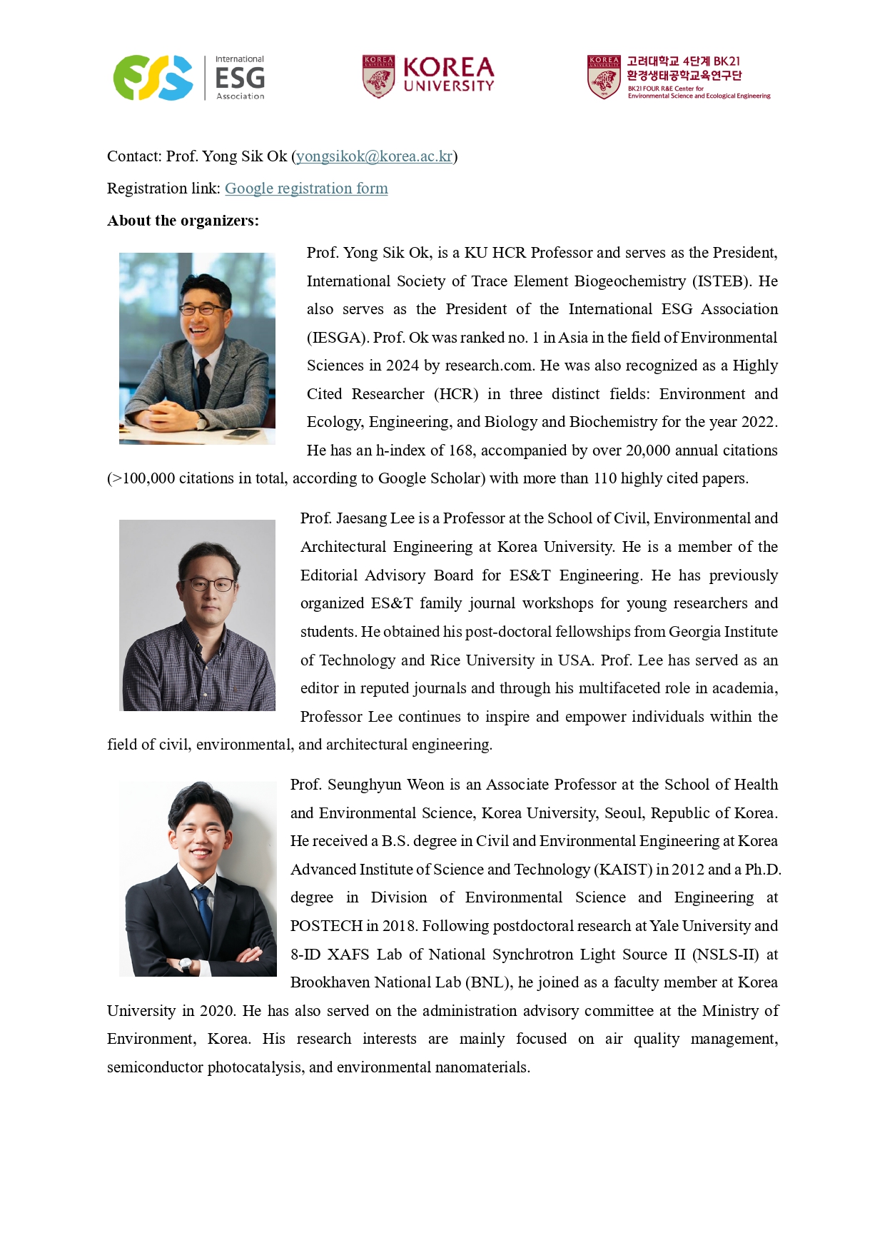 - 주 관: 고려대학교, 국제ESG협회, 4단계 BK21 환경생태공학교육연구단
