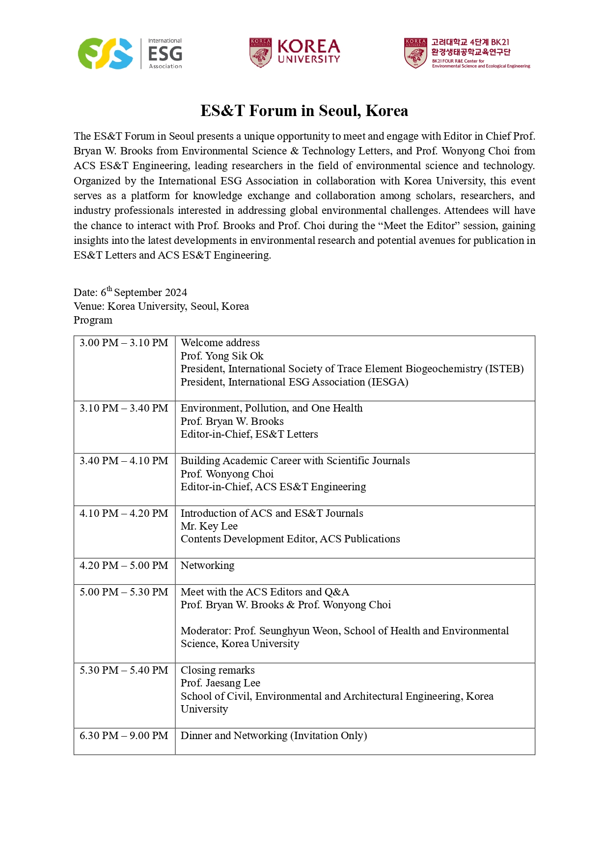 ES&T Forum in Seoul 개최 안내