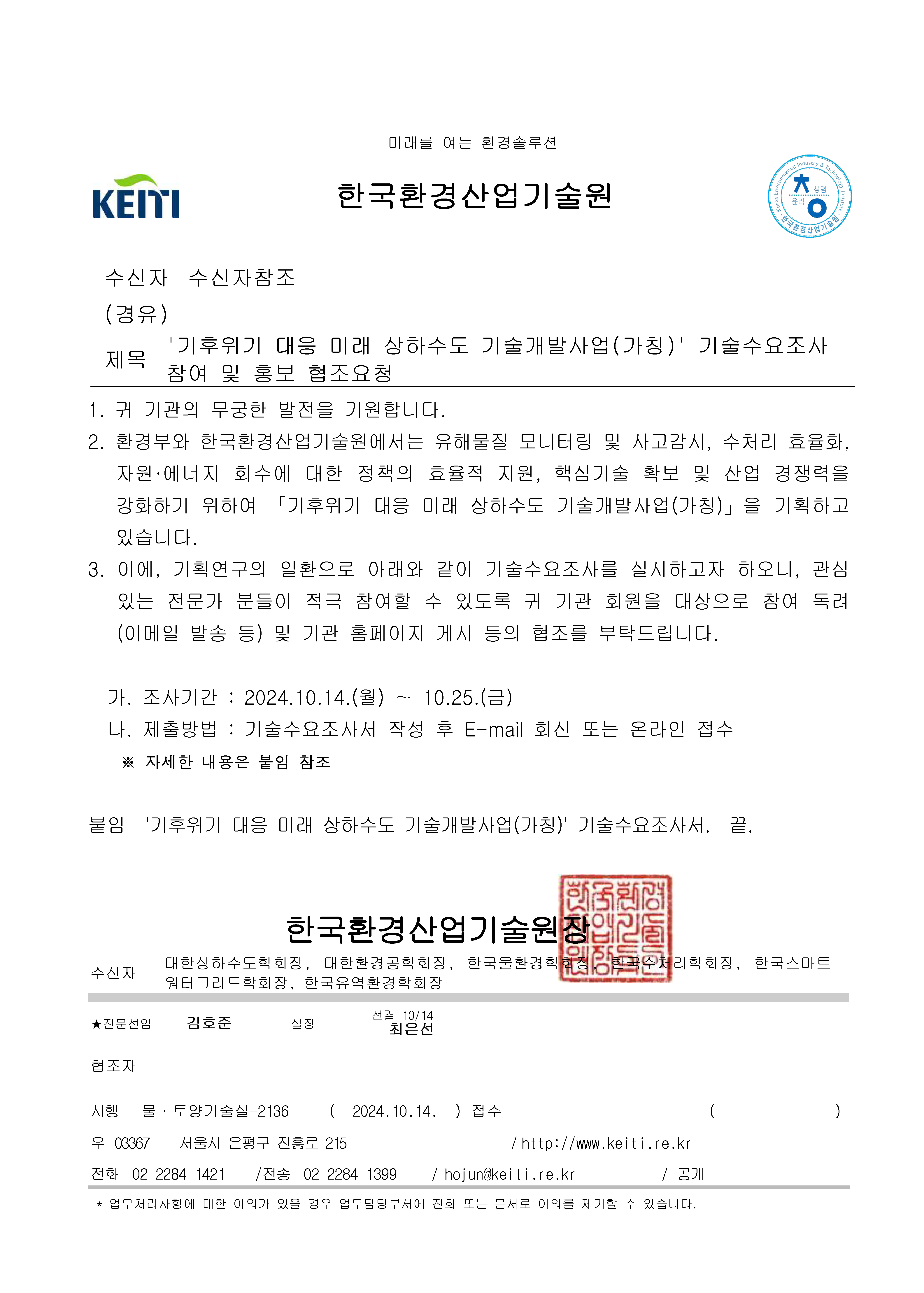 ○ 이메일 회신 : skmun2@keiti.re.kr, hojun@keiti.re.kr, survey3@knowledgeworks.co.kr