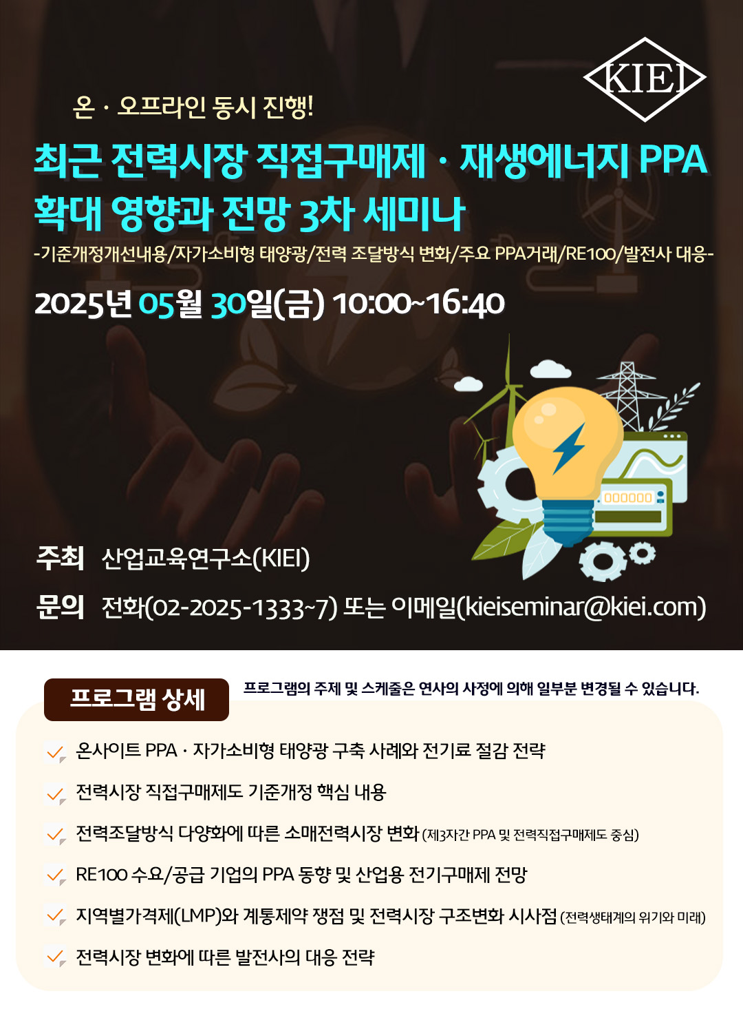 1. 행사명 : 최근 전력시장 직접구매제ㆍ재생에너지 PPA 확대 영향과 전망 3차 세미나