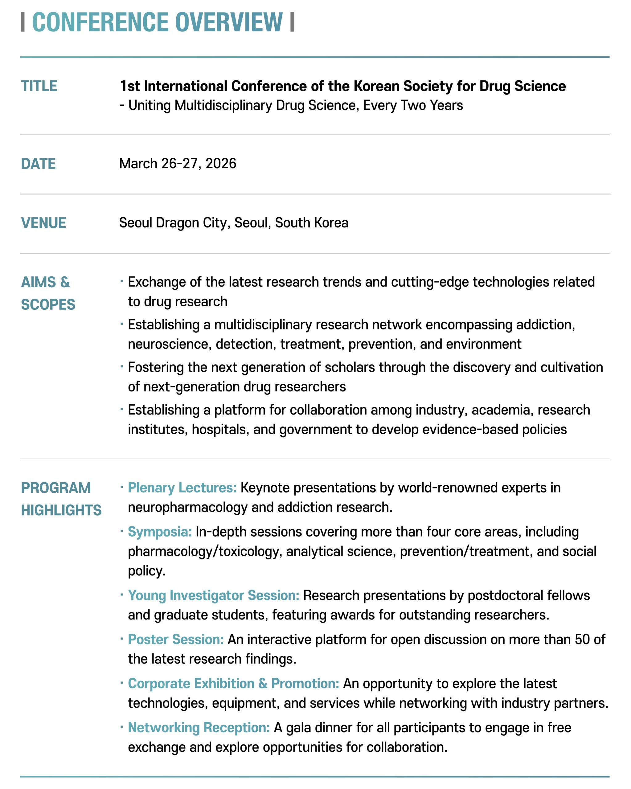 [대한마약학회] 대한마약학회 제1회 국제학술대회 개최 안내 작성자 : 대한환경공학회 작성일 : 2026-02-03 조회수 : 50 https://icksds.org 「대한마약학회 제 1회 국제 학술대회」 초청의 건 KSDS 2026 003 .pdf (다운로드 : 21회) 「대한마약학회 제 1회 국제 학술대회」 포스터.jpg (다운로드 : 21회) 「대한마약학회 제 1회 국제 학술대회」 Conference overview.jpg (다운로드 : 20회) 목록