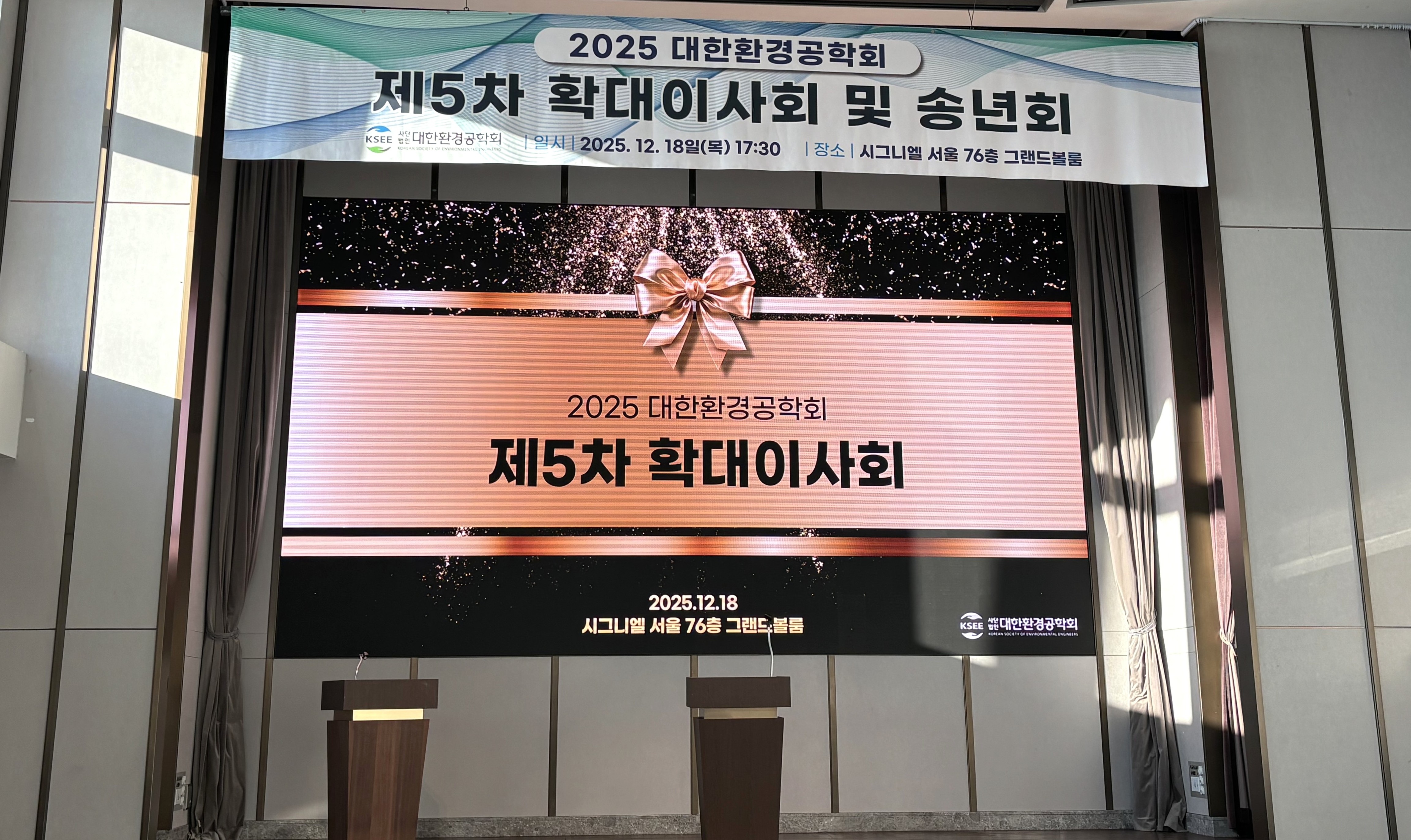 2025 대한환경공학회 제5차 확대이사회 및 송년회 조회수 : 32 게시일 : 2025-12-19 행사 일자 : 12.18 (목) 행사 장소 : 시그니엘 서울 76층 그랜드볼룸 1 5 이전 다음 목록